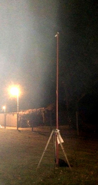 Matt M0SBI set up an inverted dipole outside in the dark with 60 feet of wire to work on 5 MHz band. He installed his new Kenwood rig on a convenient chair and soon had a QSO with a friend in Cullompton.