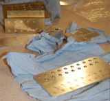 Slade M6SQB showed a wooden aerofoil wing section to prove his skills in woodwork and fabric covering of aircraft as well as repairs using needle and thread. On the end was a fibre glass wing tip which was made using a mould. Aluminium and steel test pieces demonstrated basic skills such as measuring and working to a drawing, filing, drilling, reaming, creating threads, bending metal, riveting and using a variety of fasteners. |