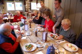 A the start/finish line cyclists gathered to swap experiences and then head into the restaurant/bar to tell their families of their adventures.