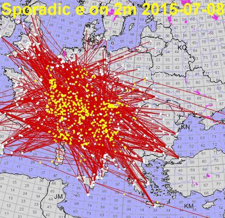 Paul's recording of Es contacts illustrated the amazing quality of signals heard on this mode. He said that the best tool for this work is the remarkable LiveMUF application written by G7RAU that deduces activity by parsing recent entries on spotting website, then triangulating the propagation. paths from the each site's Maidenhead locator. The program also illustrates activity and openings in all other VHF modes. Installation is complex but the results very rewarding. |