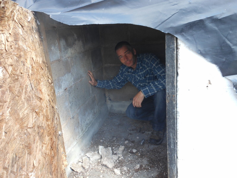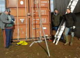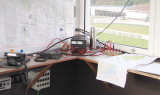 On the second day, wooden pallets were used to build a floor and electrical wiring installed. 'T' and 'K' mast mounts were bolted to the structure ready for the mast. |