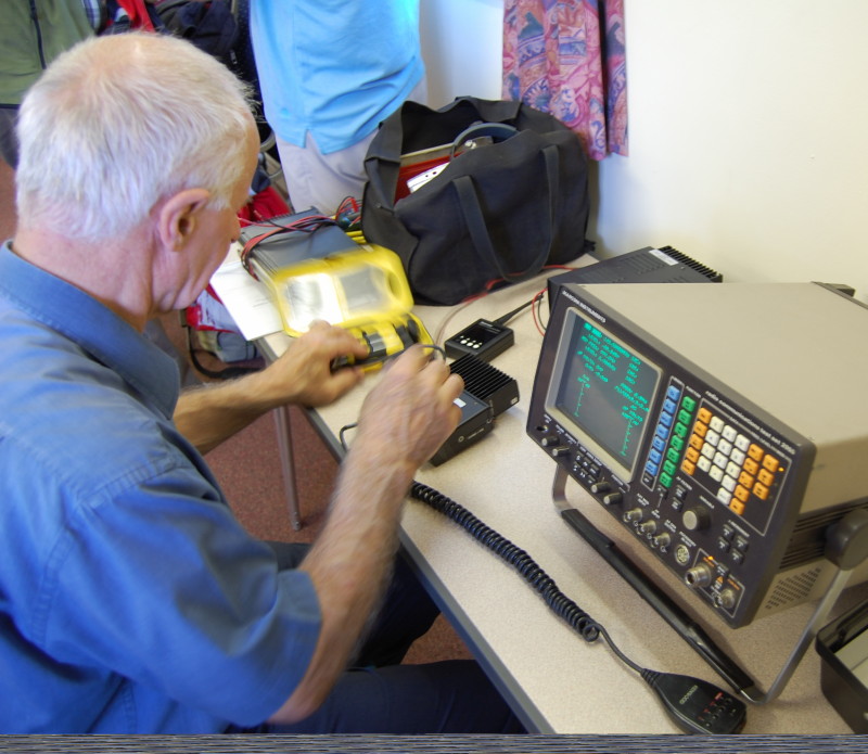 John G8XQQ used his mighty Marconi Instruments 2955A radio communications test equipment to check power levels, frequency calibration, CTCSS tones and more. |