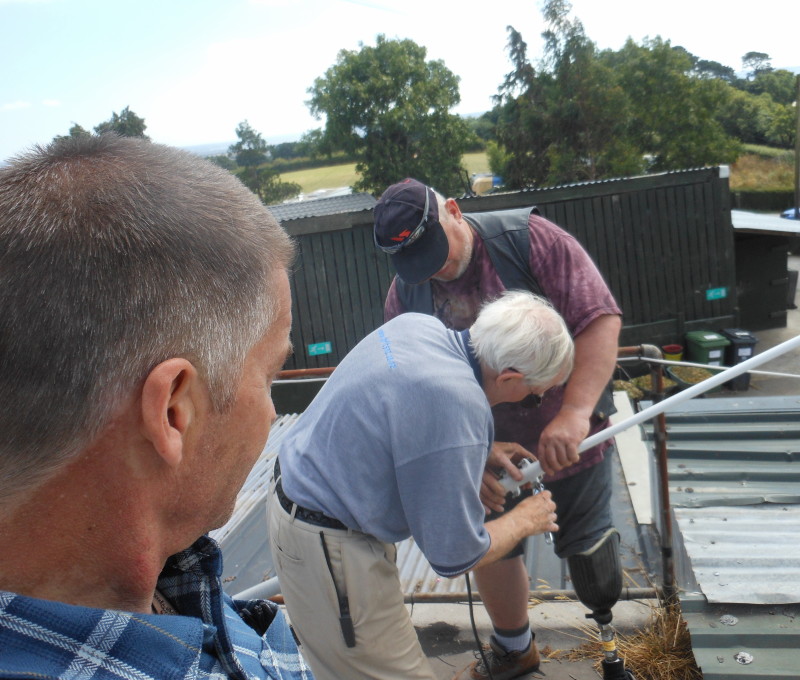 5 October 2016 Keith G7NBU led a team of club members (noted for their decorating skills and paint brush selections!), to the new repeater site to weatherproof the cabin. Keith tackled the interior with white paint, then moved onto the roof with the black paint.