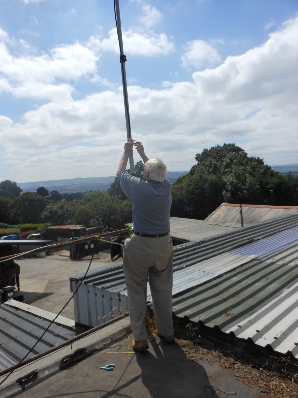 Linden M0TCF and Allan G1JXI helped assemble a mast and antenna looking over the Exe river valley.
