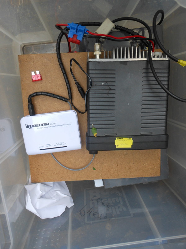 A Parrot repeater and small transmitter were fitted into the housing and other club members (Keith G7NBU and Nick M0NRJ) went off to measure field strengths.