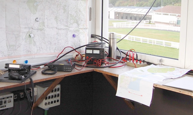 3 September 2016 Exeter Raynet members provided core communications to the Moor2Sea Sportive Cycle Ride, operating from the Control Tower at Exeter Racecourse. Keith G7NBU and Nick M0NRJ assembled antennas, cables and radios on the roof and top floor of the tower.