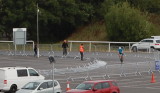 At 12:30 the gale gusted strongly enough to blow over the line of guard rails guiding the 1,000 cyclists to the start/finish line. Staff rushed to clear them as the first riders completed the route before the heavy rain arrived.