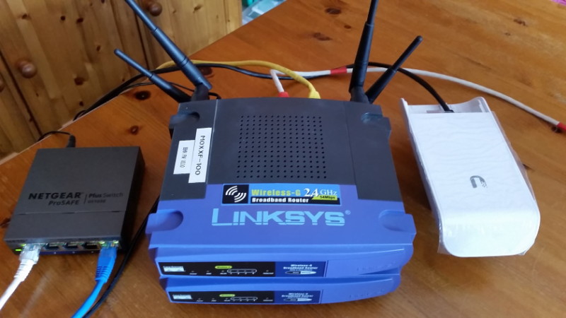 Members also became encouraged to try using Linux. A dual-boot laptop was used to demonstrate the Linux commands used to set up a webserver so that a tablet computer could see web page updates via the new Access Point on the router. This simulated a basic link between mesh nodes. |