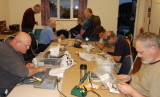 Pete G3ZVI led a short class in the correct way to terminate crimped and soldered BNC and N-type connectors onto co-ax cable. This is so popular it will now become an annual event! |