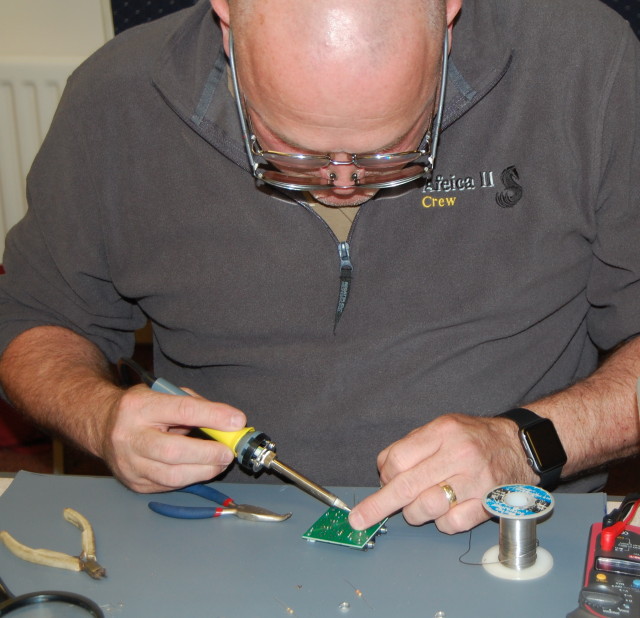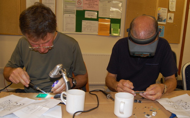 28 September 2016 Linden M0TCF, the EARS Training Officer, ran the club's first Buildathon! He provided mini-kits for members to construct and hone up their soldering skills. Much fun was had as resistor colour codes were recalled, electrolytic capacitors polarities were checked and construction instructions decoded from circuit diagrams and component lists. |